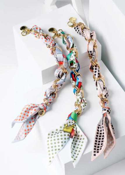 因為「每個人都是自己的設計師!」EMMA說, 如果說色彩是你的心情展現, 那麼七條混色閃耀的 PEPPER’S WISH 幾何絲巾手挽鍊, 絕對是你今年秋天必收的「超組搭」時尚夥伴。 |