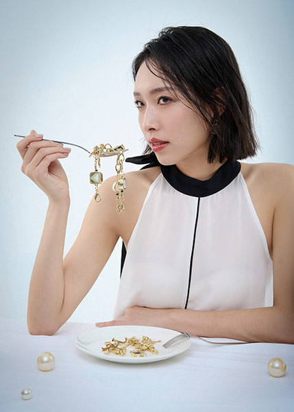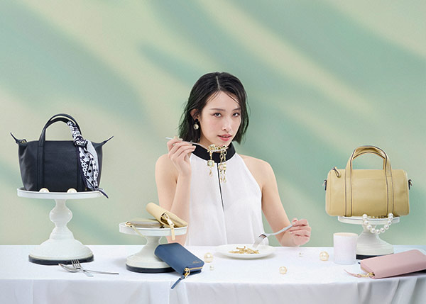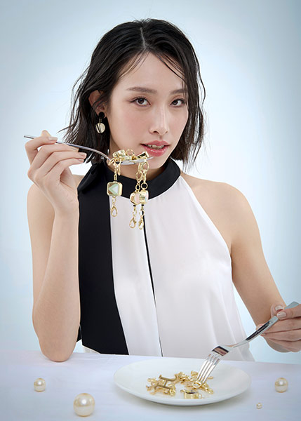 漂亮有個性的伸縮易拉釦化身想像零嘴、 單色迷你包堆疊出視覺美味蛋糕、長短夾變身可口的餅乾, 再綴上花色絲巾、手挽鍊、金屬光字母、 光環之心手環點綴裝飾,一桌自創時尚視覺饗宴,歡慶登場!