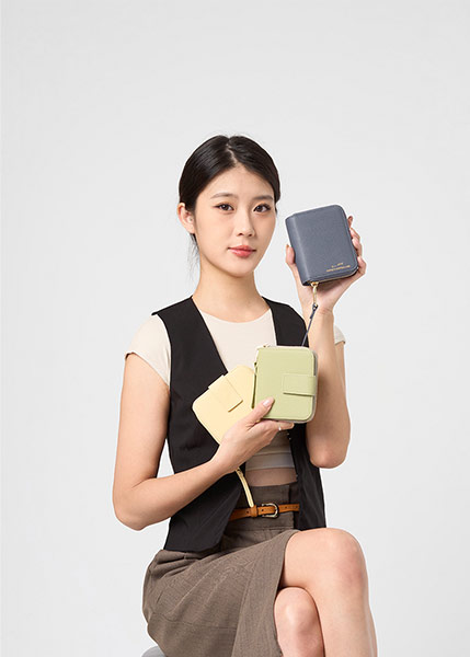 僅164克輕量長夾,為你帶來3層鈔票層、 1個零錢袋、8個卡片層與2個插式口袋, 不僅承載著對財富與生活的尊重, 更以具包容力優雅柔美的櫻花粉展現細膩質地; 介於天空藍與岩石灰之間的霧灰藍,展現恰到好處的時尚氣場, 成為這場時尚視覺饗宴中,最能詮釋無懼有愛底蘊的層次拼盤。