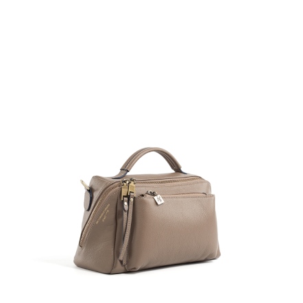 DOT 真皮船型斜背包 - 淺沙色/簡約黑(225-087)