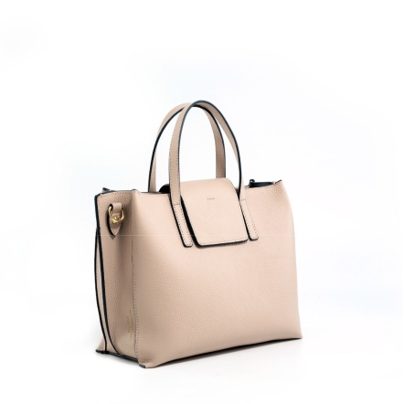 DOT 真皮船型手提包 - 粉膚色/午夜藍(225-091)