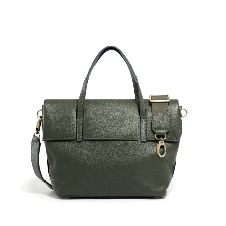 PEGASUS牛皮翻蓋手提小公事包 - 暗墨綠/月光灰 (124-002)