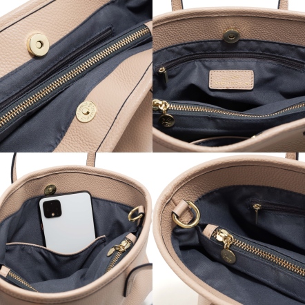 ◆氣質簡約通勤包款◆大容量雙層收納桶包◆中間拉鍊分層,內容物分類收納方便◆素雅荔枝紋理,提升質感◆可依生活需求變化手提、肩背、斜背,三種用途