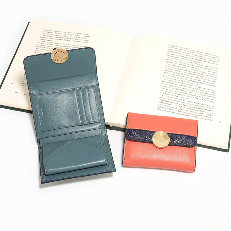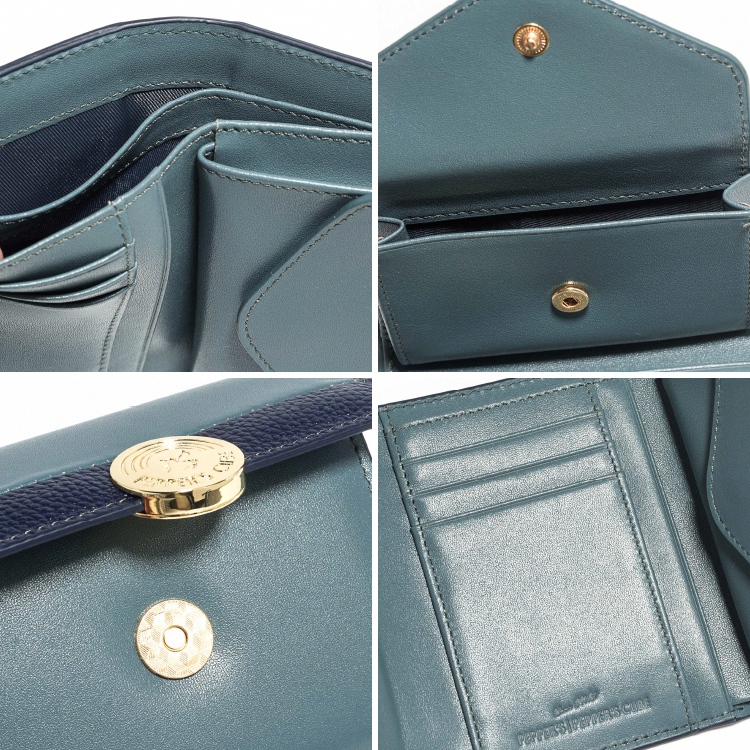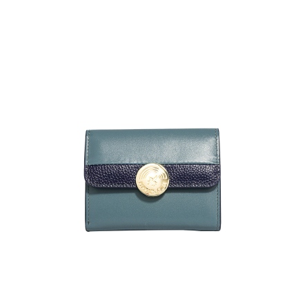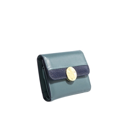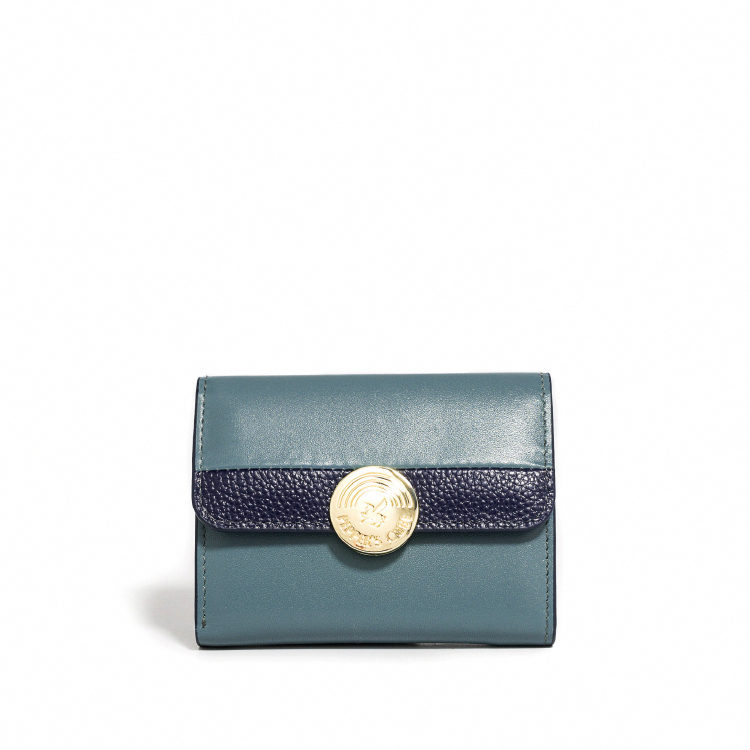 Raven 牛皮撞色短夾 - 雲杉藍