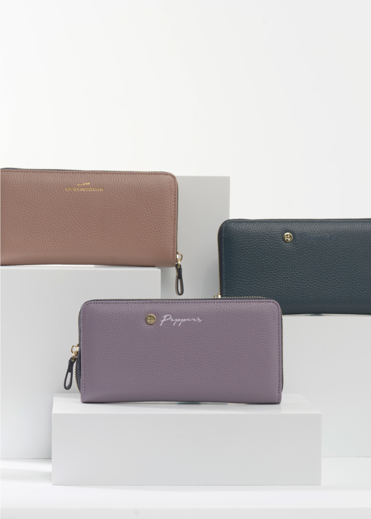 ◆ 優雅草寫LOGO繡字◆ 多夾層與卡片層◆ ㄇ字形拉鍊開口 拿取方便