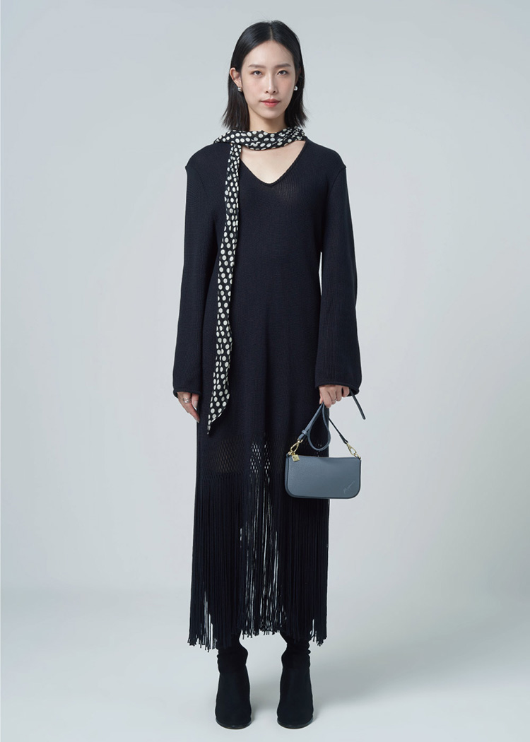 CUBE 真皮彎月肩背包 - 簡約黑/月光灰(225-117)