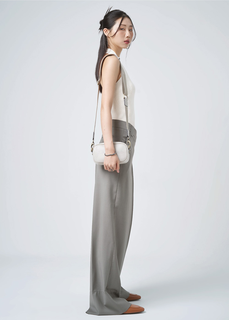 INK 牛皮翻蓋單肩小方包 - 象牙灰/鼠尾草綠(224-061)