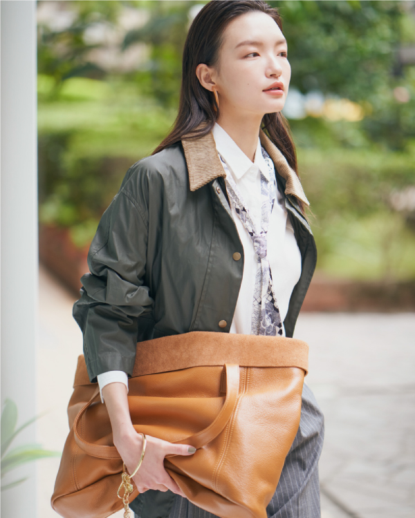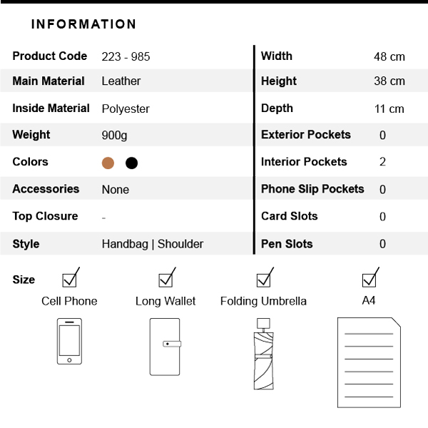 PEGASUS 牛皮反摺大托特包 - 焦糖棕/簡約黑 ( 223-985 ) USD$ 207.1