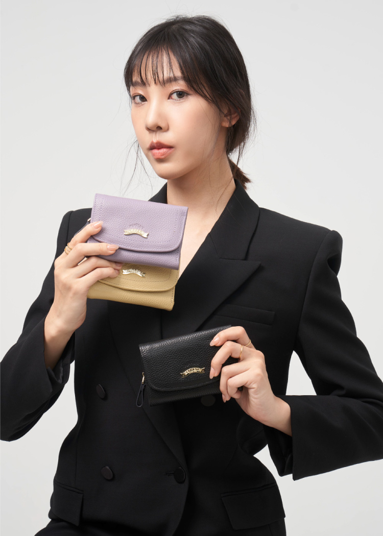 WISH 牛皮三折信封短夾 - 奶油黃/丁香紫/簡約黑 ( 223-004 ) USD$ 106.5