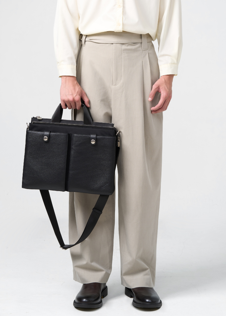 ◆ 皮革X尼龍拼接商務公事包款,真皮質感兼具實用機能。◆ 外袋雙層機能大口袋,加上皮扣帶防滑出設計,你的商務神隊友◆ 內側外袋隱形磁吸設計,收納好安心◆ 手提變深加大拉鍊,內層升級插式口袋,外加扣帶固定,可放文件資料。◆ 可放14吋筆電、平板。