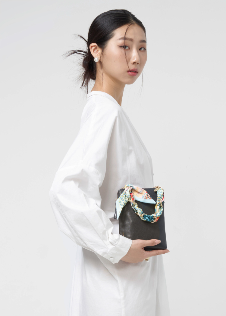◆ 可當包包手挽帶或掛飾◆ 印花絲巾搭配金屬鍊帶◆ 金幣飾釦 提升質感