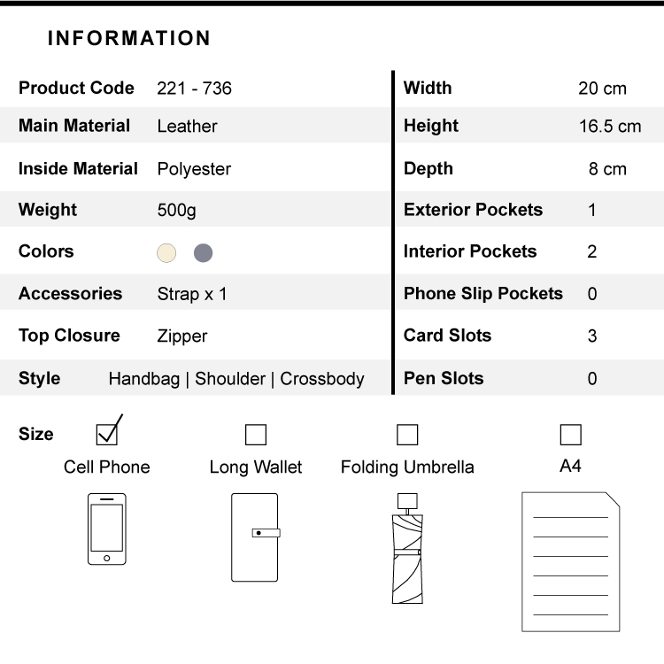 長時間不使用時,先將紙團塞進包包內維持包形,並裝入品牌透氣防塵袋,放置陰涼乾燥通風處。