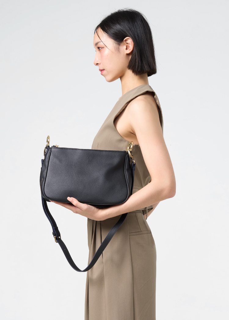 INK 雙層拉鍊單肩包 - 摩卡棕/簡約黑(225-094)