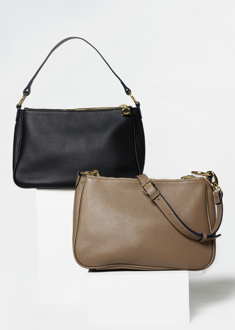 ◆附可調整真皮長背袋,可拆換手提單肩提把,一包多用。