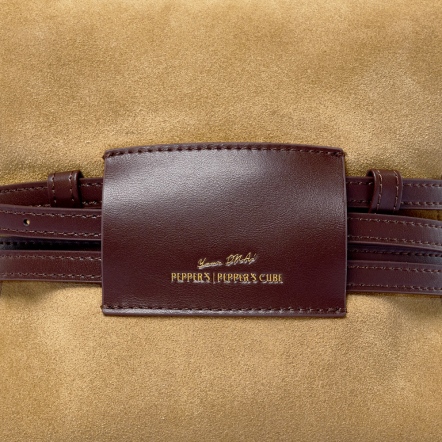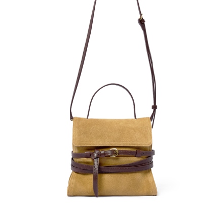 ◆時尚皮帶造型手提箱包◆麂皮翻蓋基礎收納,內附插式皮標口袋,常用卡方便收納。◆可拆式腰帶,可以自行綁帶做造型,附可調式背帶,一包三用。◆麂皮材質遇水容易產生摩擦染色,應避免穿著淺色衣物。