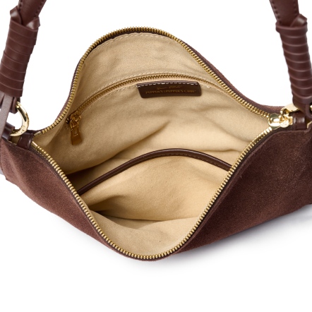 ◆麂皮率性皮編繩腋下包◆基礎收納隨身小包,內附插式口袋及拉鍊口袋,隨身小物分層收納◆可拆式背帶扣環,隨心所欲更換背帶造型。◆麂皮材質遇水容易產生摩擦染色,應避免穿著淺色衣物。