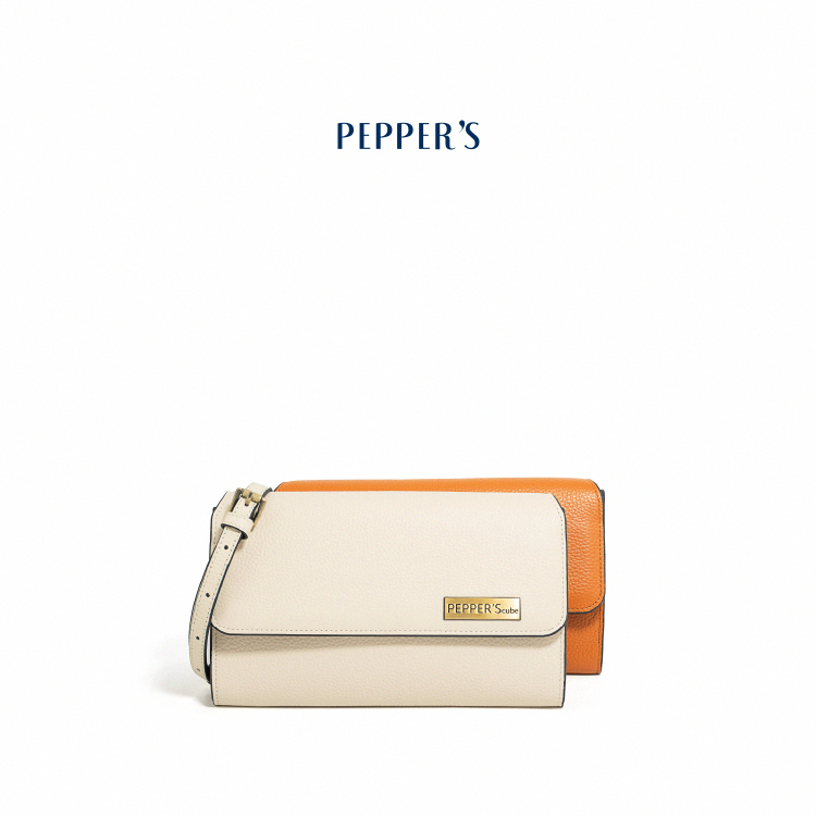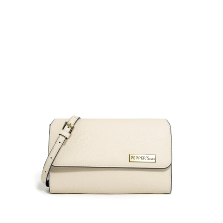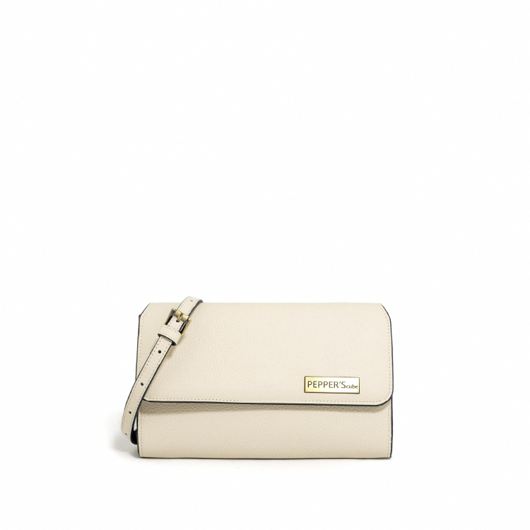 CUBE 牛皮掀蓋斜背包 - 杏仁白 ( 222-867-05 )