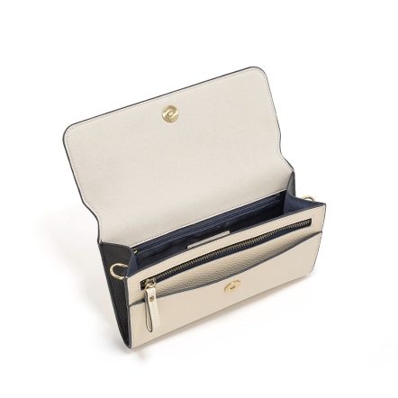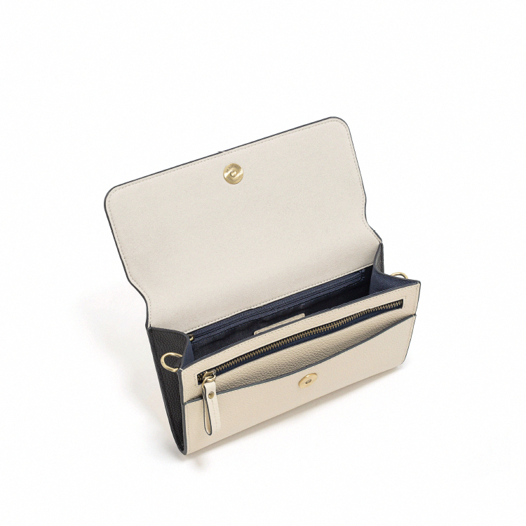 CUBE 牛皮橫式掀蓋隨行包 - 淡拿鐵/深紫色 ( 223-929 )