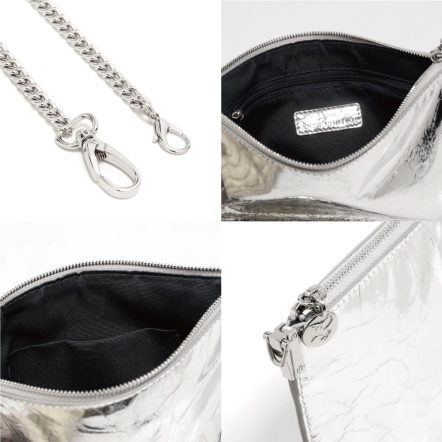 ◆隨身輕便信封造型金屬鍊條包◆個性爆裂紋金屬紋理,展現個人風格◆金屬鍊可依造型自行調整長度