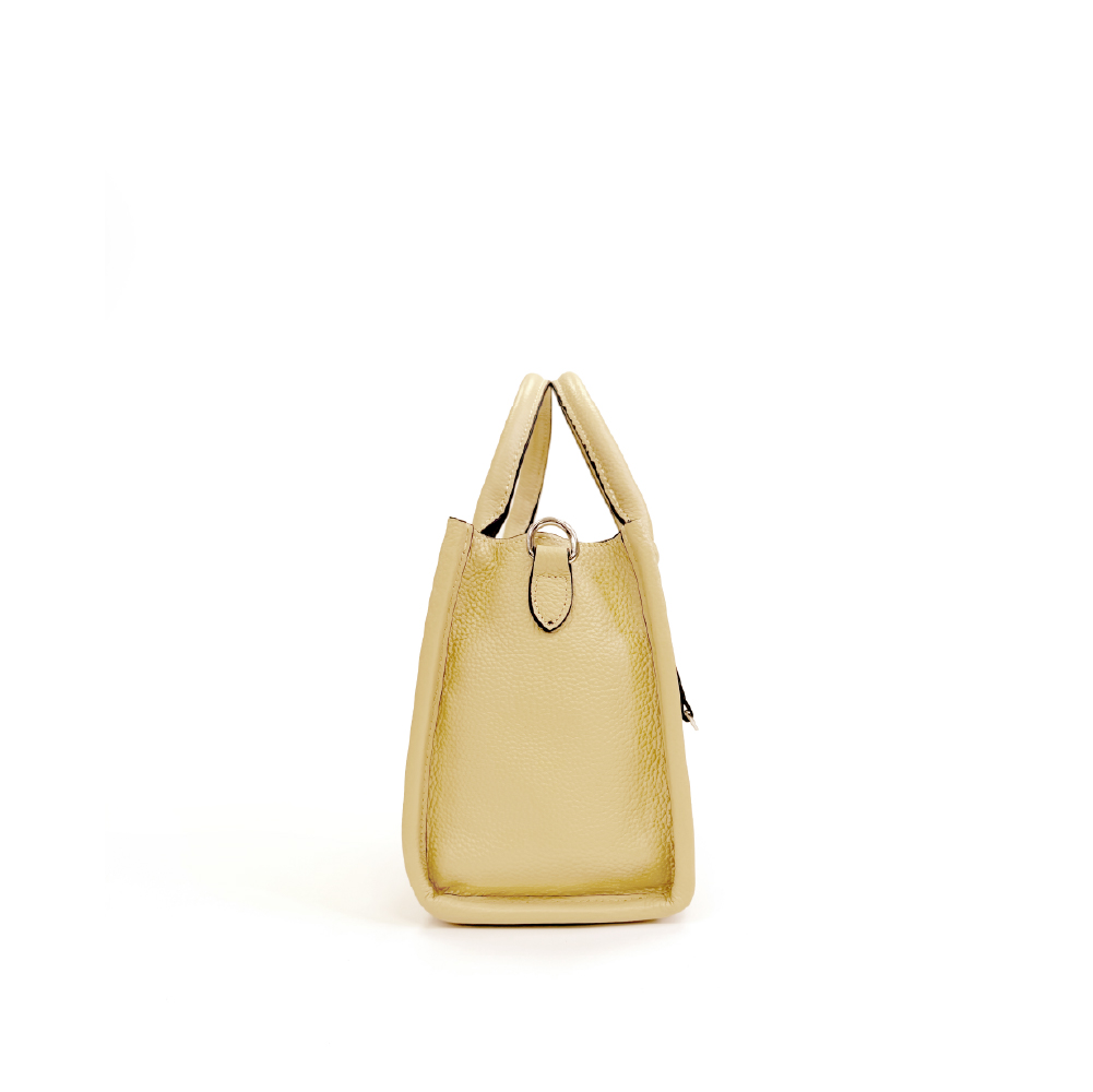 CUBE 真皮拉鍊手提方包(M) - 奶油黃/簡約黑/月光灰(226-141)