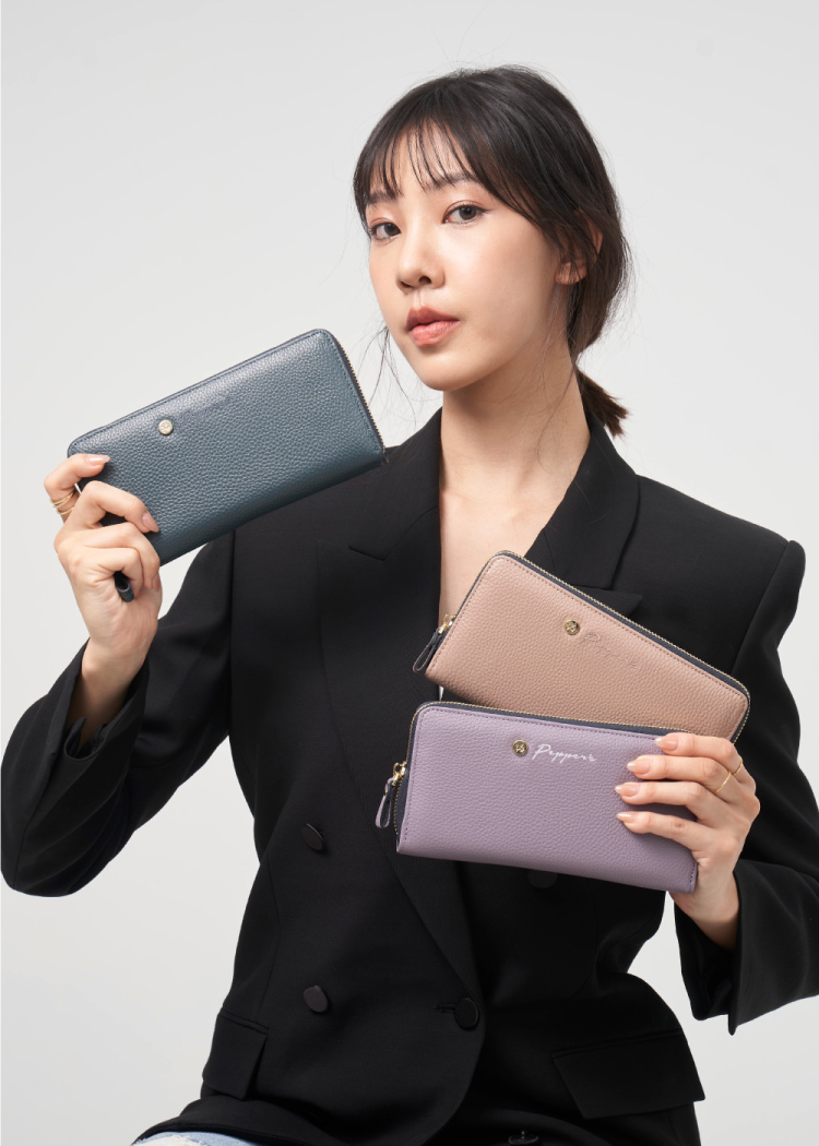◆ 優雅草寫LOGO繡字◆ 多夾層與卡片層◆ ㄇ字形拉鍊開口 拿取方便