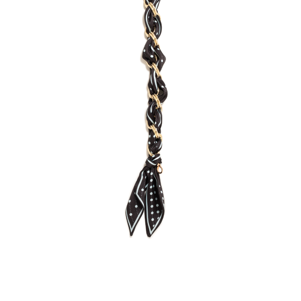 ◆ 可當包包手挽帶或掛飾◆ 印花絲巾搭配金屬鍊帶◆ 金幣飾釦 提升質感