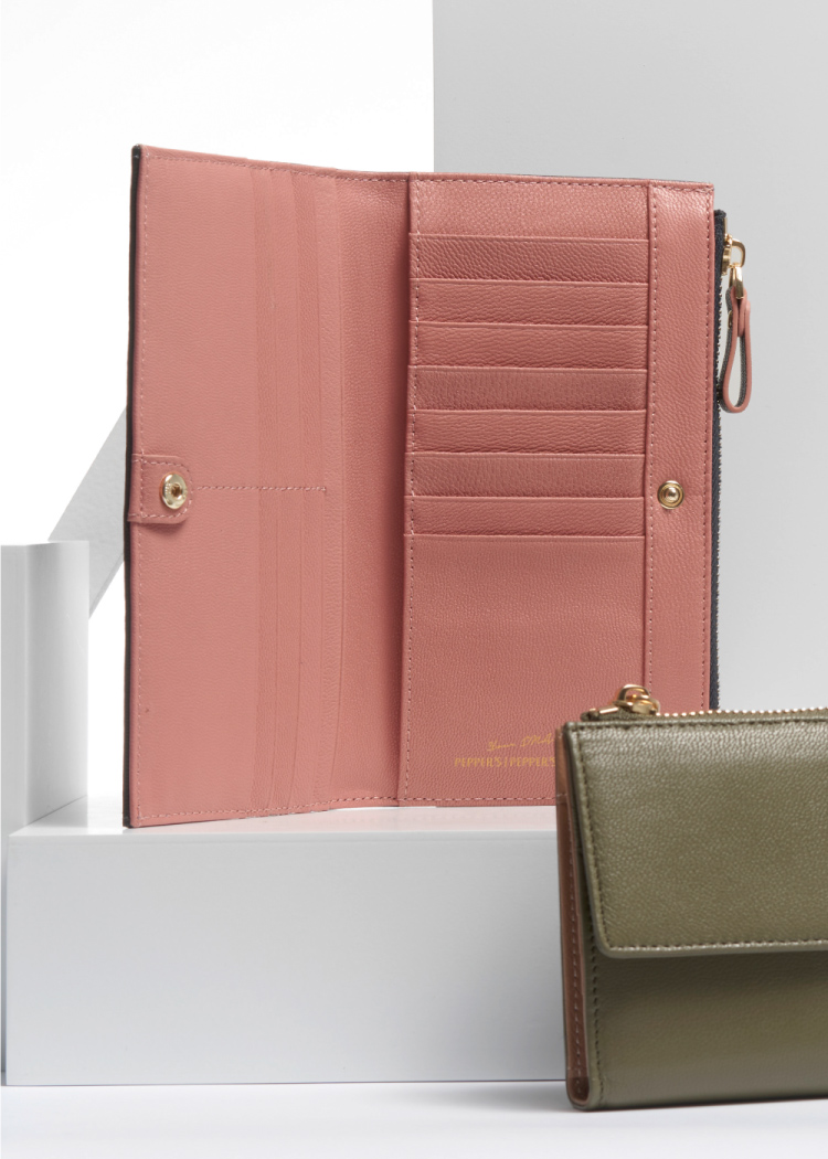GOLD 羊皮撞色長夾 - 午夜藍/沼綠色 ( 224-047 ) USD$ 129.2