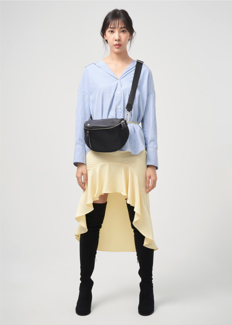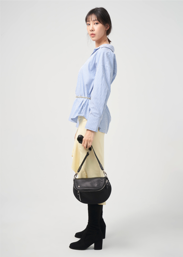 ◆ 荔枝紋牛皮袋蓋 高雅質感◆ 雙拉鍊開口 拿取便利◆ 飛馬錐形飾釦 個性有型◆ 簡約、俐落的中性風格