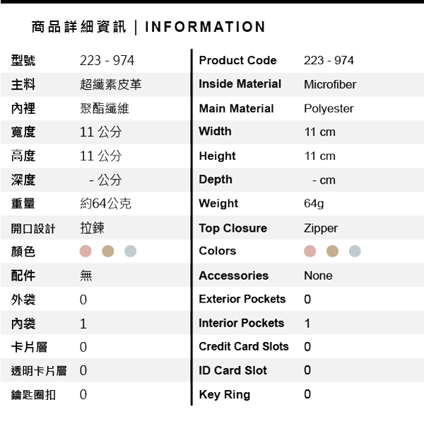 DNA 超纖素皮革方形零錢包 - 玫瑰粉/摩卡棕/冰晶藍 ( 223-974) USD$ 22.1