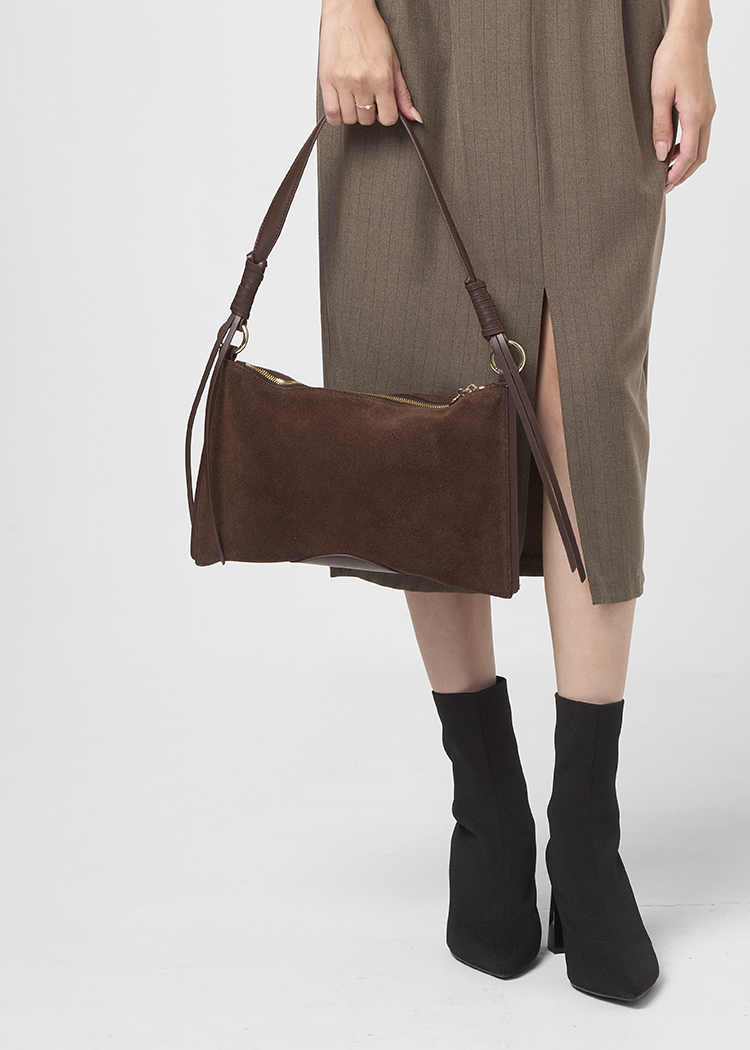 ◆麂皮率性皮編繩腋下包◆基礎收納隨身小包,內附插式口袋及拉鍊口袋,隨身小物分層收納◆可拆式背帶扣環,隨心所欲更換背帶造型。◆麂皮材質遇水容易產生摩擦染色,應避免穿著淺色衣物。