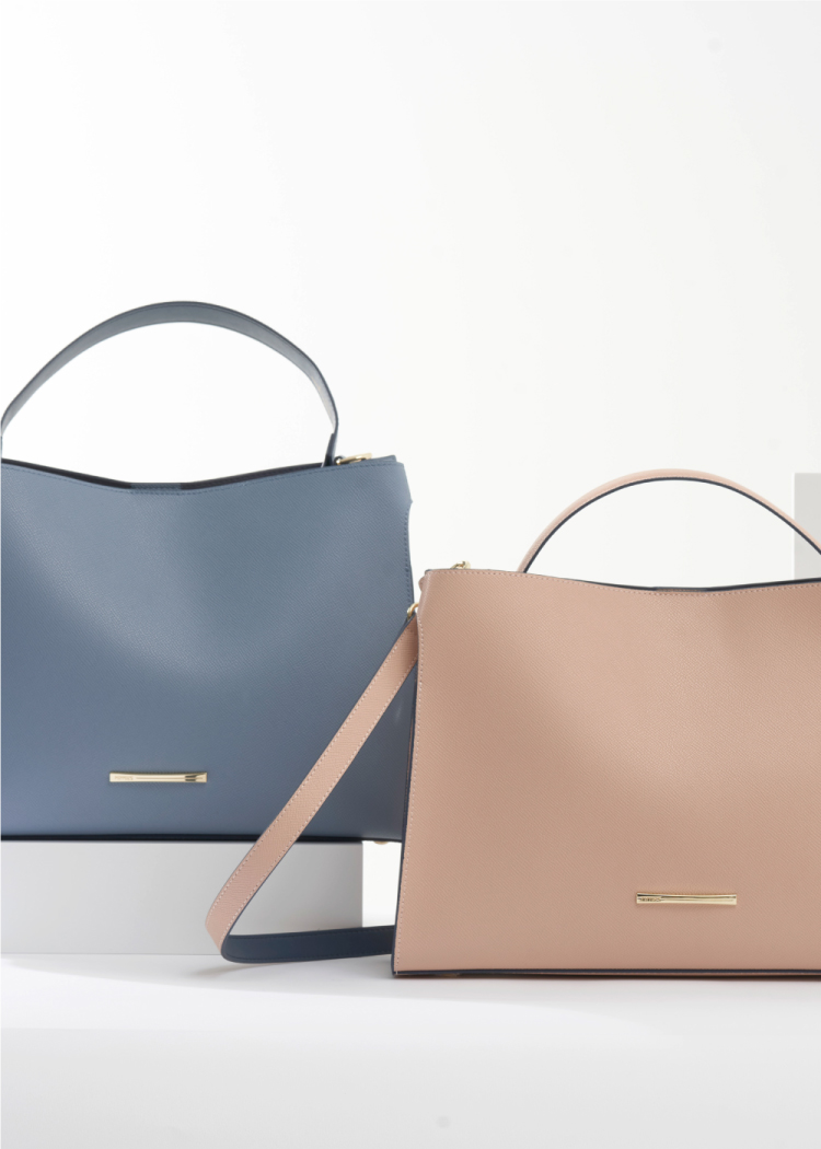 INFINITY 牛皮方形手提包 - 蜜桃粉/空氣藍 ( 223-996 )