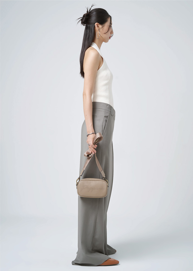 DOT 真皮船型斜背包 - 淺沙色/簡約黑(225-087)
