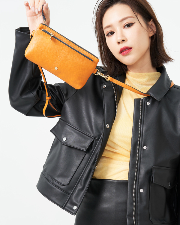 INK 牛皮雙層隨行包 - 橘黃色/午夜藍/象牙灰 ( 223-952 )