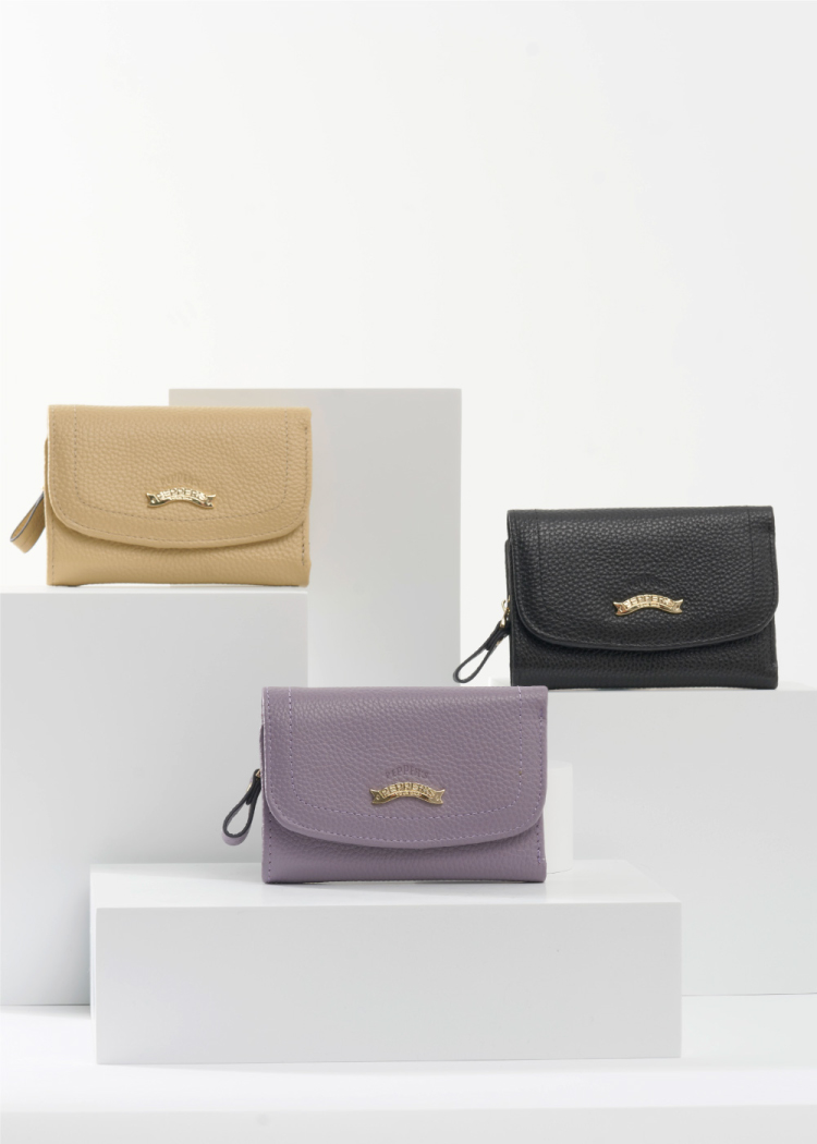 WISH 牛皮三折信封短夾 - 奶油黃/丁香紫/簡約黑 ( 223-004 ) USD$ 106.5
