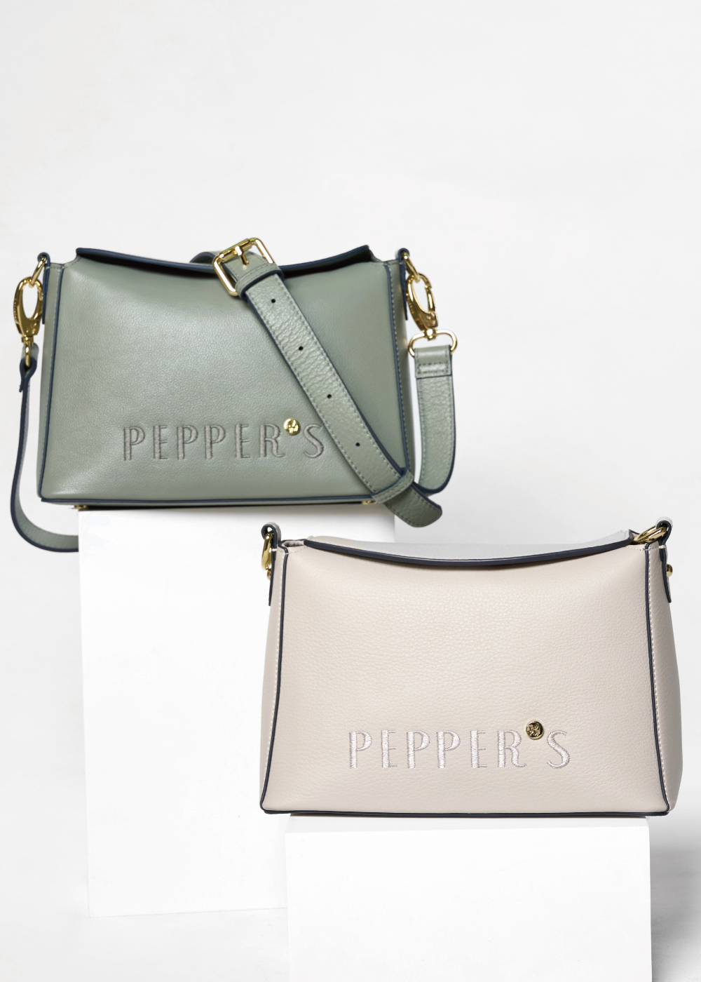 INK 牛皮翻蓋單肩小方包 - 象牙灰/鼠尾草綠(224-061)