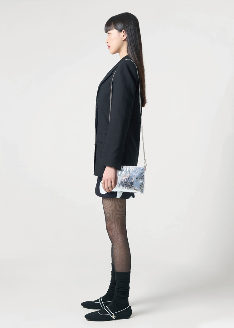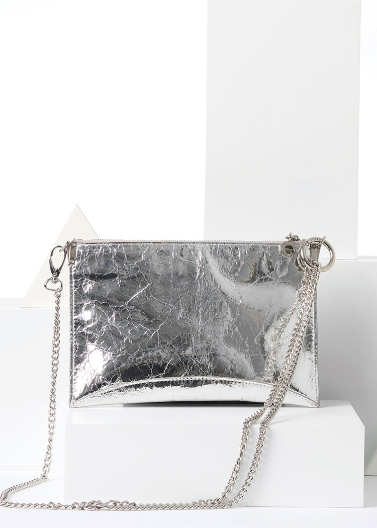 ◆隨身輕便信封造型金屬鍊條包◆個性爆裂紋金屬紋理,展現個人風格◆金屬鍊可依造型自行調整長度