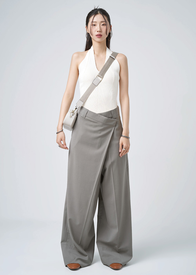 INK 牛皮翻蓋單肩小方包 - 象牙灰/鼠尾草綠(224-061)