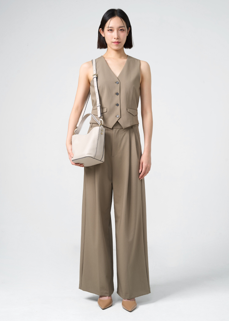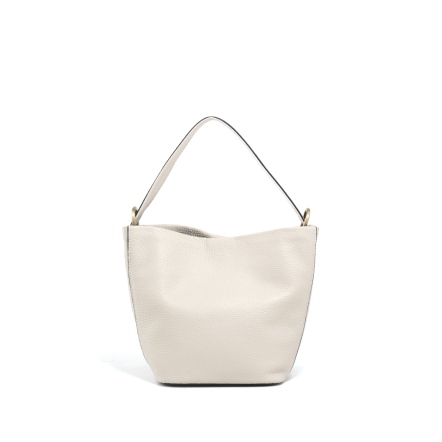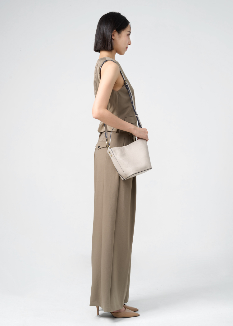 ◆附可調整真皮長背袋,單邊手提圈扣可將袋子束口,一包多用。