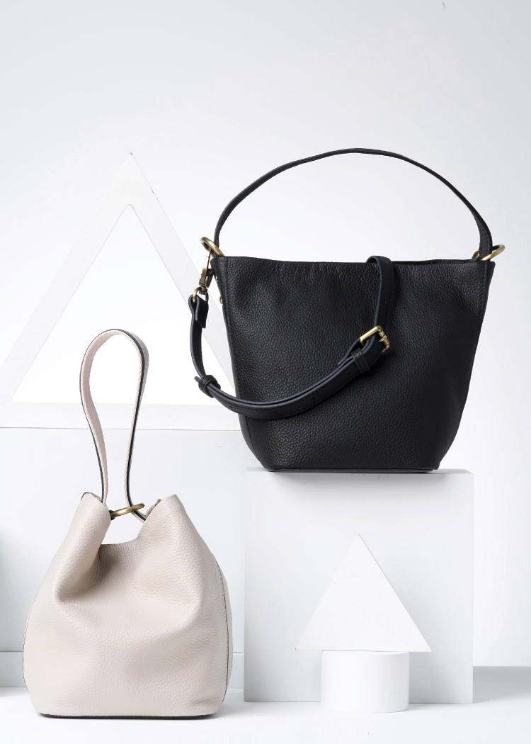 FUTUREME 真皮迷你水桶包 - 簡約黑/月光灰(225-095)