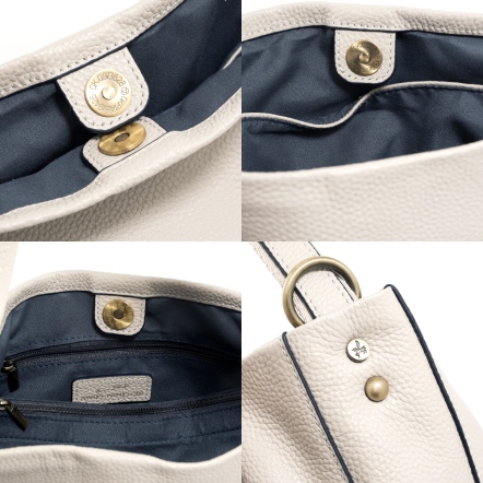 PEGASUS 牛皮拉鍊三層斜背包 - 淺米棕/午夜藍(224-072)