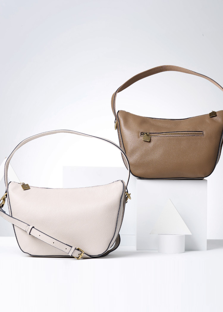 FUTUREME 真皮船型單肩包 - 摩卡棕/月光灰(225-096)