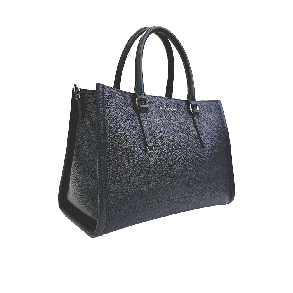CUBE 真皮拉鍊手提方包(L) - 午夜藍/薄荷綠(226-142)