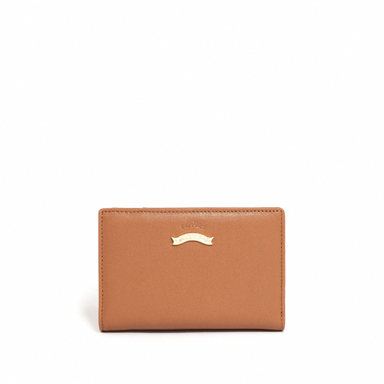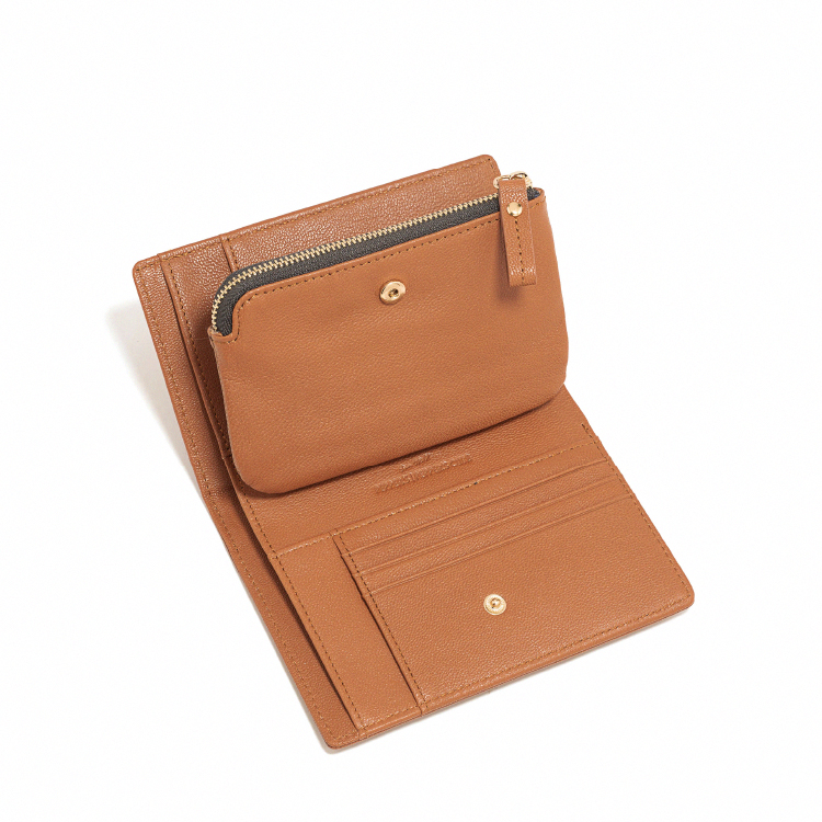 WISH 羊皮夾心中夾 - 焦糖棕