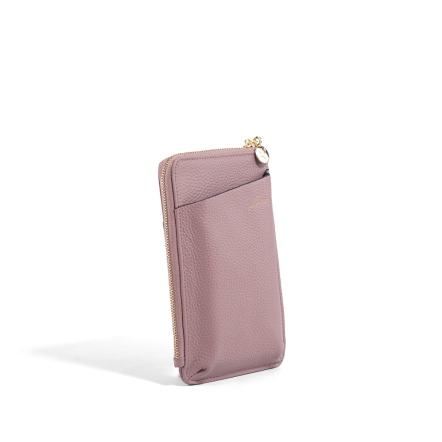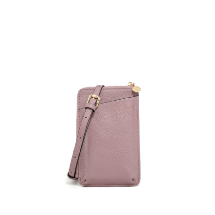 GOLD 牛皮卡夾零錢手機包 - 杏仁白/香檳紫 ( 223-958 )