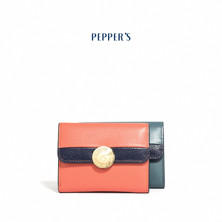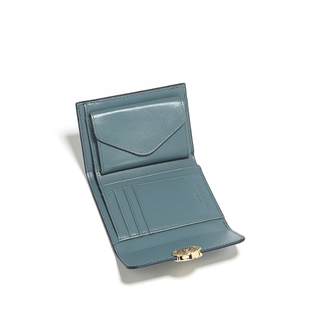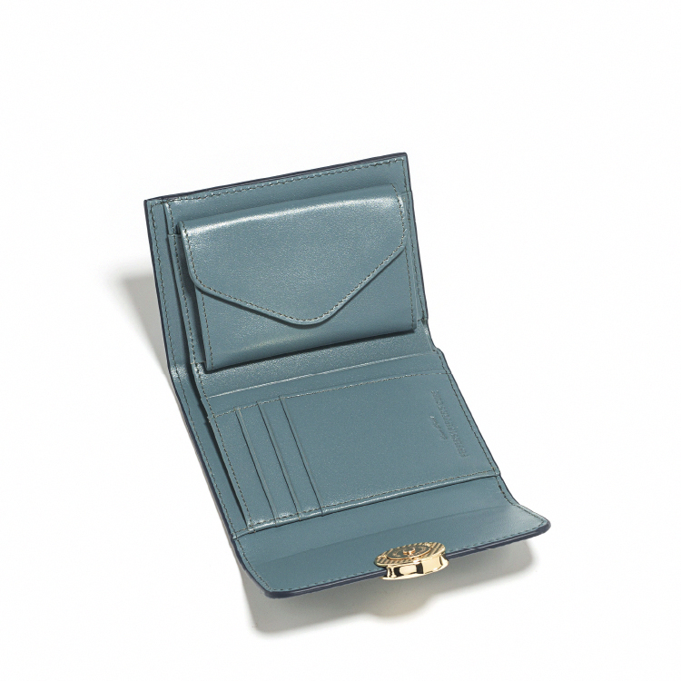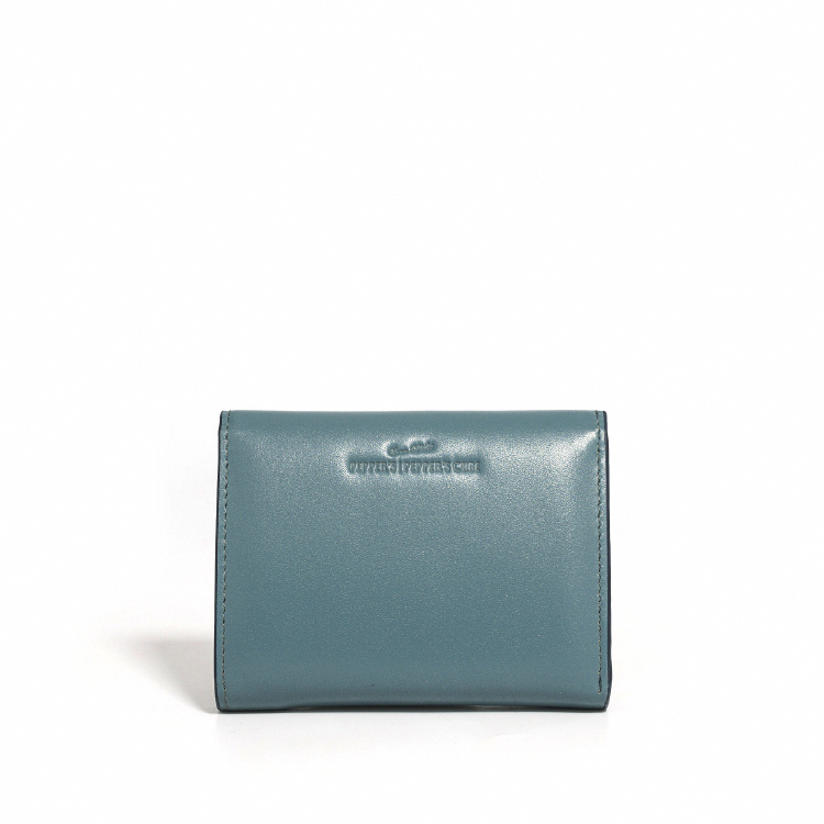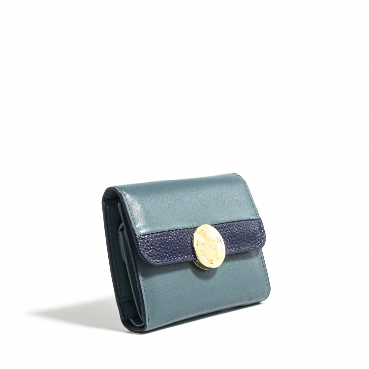 Raven 牛皮撞色短夾 - 雲杉藍