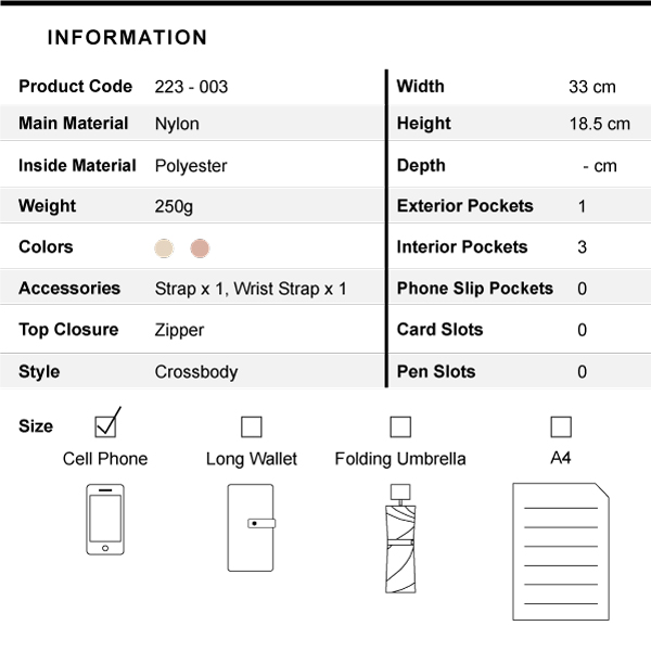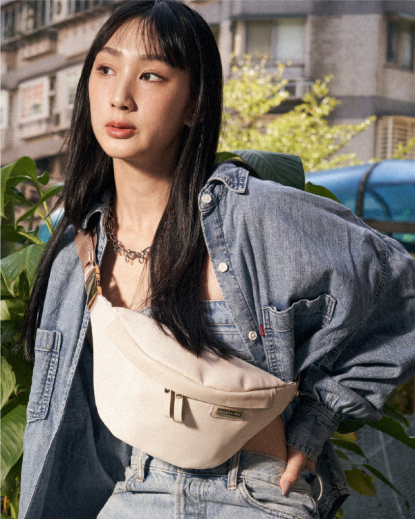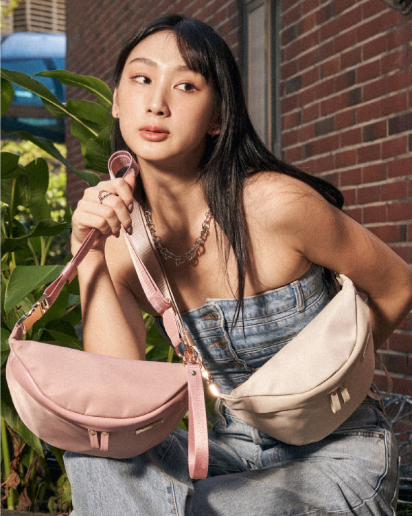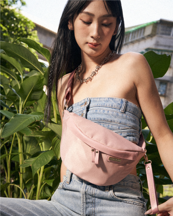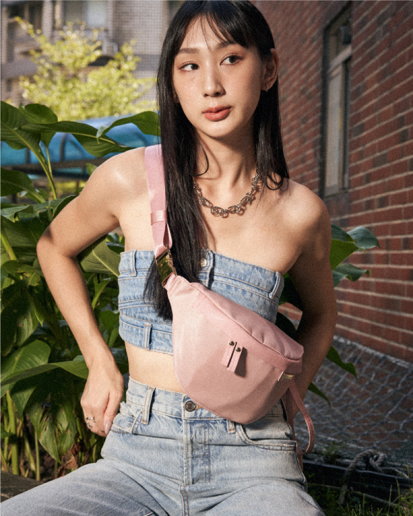 CUBE 輕量尼龍拉鍊胸包 - 淡柔粉 ( 223-003 )