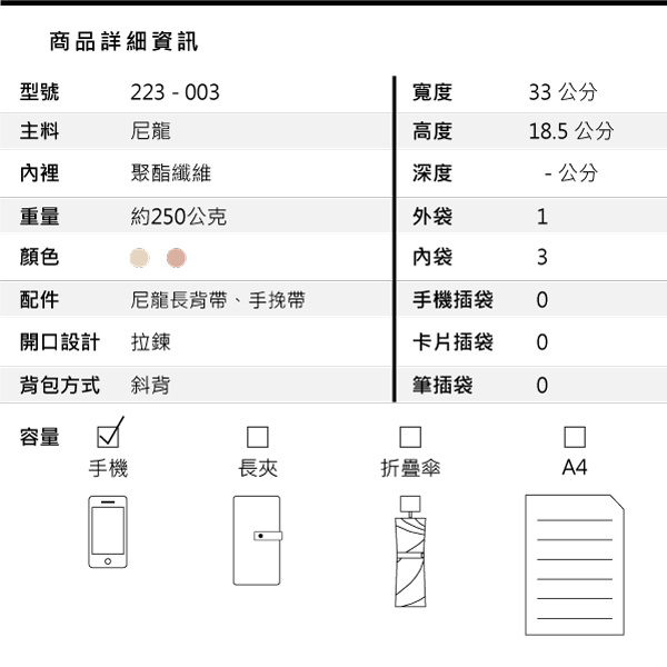 ◆  嚴選尼龍材質 超輕量、防潑水