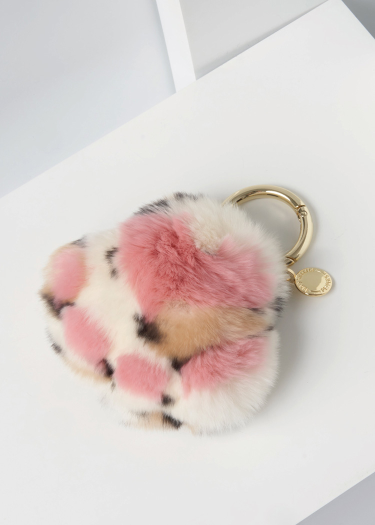 FLUFFY 豹紋愛心絨毛掛飾 - 淺米色/焦糖棕/格雷灰(325-058)