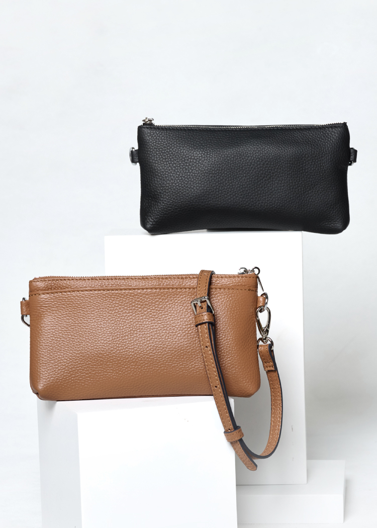 ◆牛皮拉鍊出國旅行隨身小包◆附可調整長度真皮背帶,肩背、斜背質感隨行。◆基礎收納隔層滿足日常所需◆經典素面荔枝紋牛皮簡約時尚設計