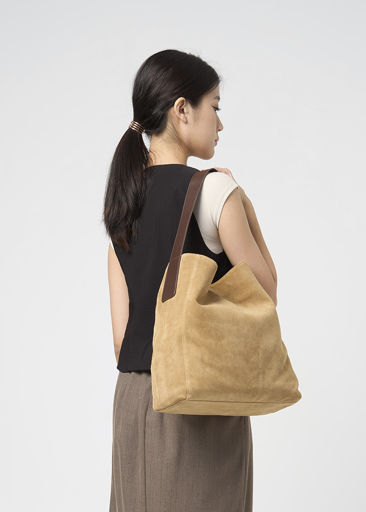 POP 麂皮直式肩背托特包 - 亞麻棕(225-124)